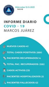 Defensa Civil de la Municipalidad de Marcos Juárez informa los casos de Covid-19.