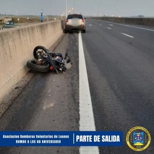 Como resultado del hecho, los bomberos trasladaron al conductor de la moto, oriundo de la provincia de Santa Fe, al hospital local con politraumatismos.