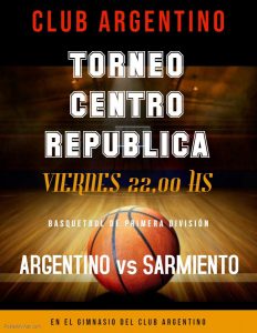 Hoy viernes a partir de las 22 horas jugará la Primera División de Básquet de Argentino de Marcos Juárez ante Sarmiento de Leones por el Torneo Centro de la República.-
