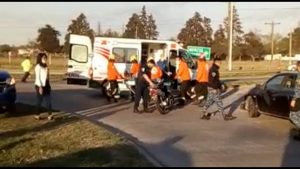 Éste accidente involucró a dos (2) personas que estaban a bordo de la moto, que fueron derivados hacia el hospital local y el automóvil era conducido por una femenina que no requirió traslado.