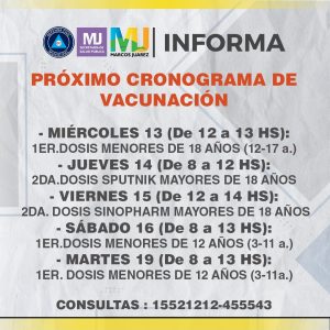 La Municipalidad de Marcos Juárez informa el cronograma de vacunación para los próximos días: