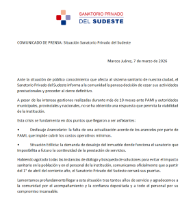 Por tal motivo, decidieron que, desde el próximo 1 de abril, el centro de salud cesará sus actividades y cerrará sus puertas. Como ya es de público conocimiento, desde comienzos de marzo habían dejado de atender a los afiliados de PAMI.