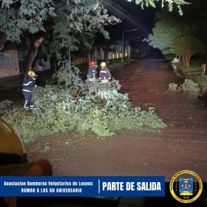 Como es de público conocimiento, en la medianoche del sábado, el cuerpo bomberil de Leones fue convocado para la remoción de estos artefactos volados mientras se daba el temporal.