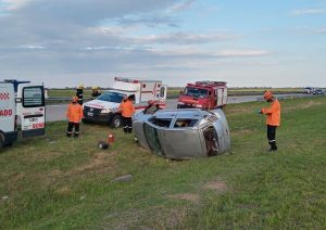 Alarma general de bomberos voluntarios a las 18:45 horas del día domingo. Bomberos es convocado por un accidente en autopista km 419 entre dos vehículos. Al llegar al lugar nos encontramos con los ocupantes de ambos vehículos fuera de los mismos, sin lesiones de consideración.