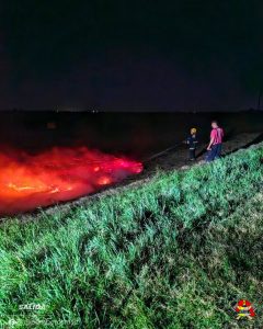 Durante la noche del sábado, aproximadamente a las 22 horas, el cuerpo bomberil de la ciudad fue convocado por un incendio de pastizales que estaba ocurriendo sobre Ruta 12, a la altura del kilómetro 46, en el sector de la banquina.