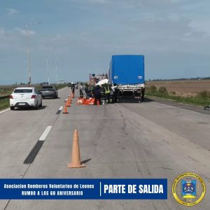 Durante la tarde del lunes, aproximadamente a las 14:20 horas, el cuerpo bomberil fue convocado por un siniestro vial ocurrido en la Autopista, mano Córdoba – Rosario, a la altura del acceso a Leones, en el kilómetro 463.