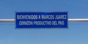 Marcos Juárez con un gran cartel recibe a la gente, con el agregado de productivo, lo de financiero se imagina y no se escribe, sin embargo 7 (siete) bancos de primera marca, 2 (dos) tarjetas locales, 2 (dos) mutuales, también locales, varias financieras también locales, en una ciudad pequeña de apenas 30.000 (treinta mil) habitantes, es una descomunal desproporción financiera, más allá que aquí hace unos años cayeron dos mutuales de clubes dejando tendal de gente cobrando como pudo.-