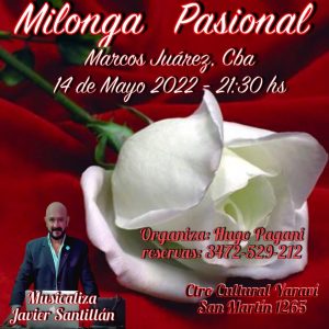 Este Sábado 14 de mayo del 2022 a las 21:30 hs se realizará una «Milonga Pasional en el Centro Cultural Arte Nativo Yaravi»