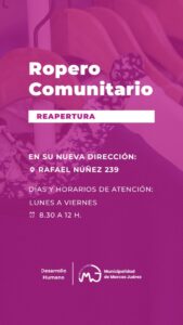El área de Acción Social de la Municipalidad de Marcos Juárez informa que el próximo lunes 27 de mayo reabre el Ropero Comunitario de la ciudad.