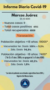 Defensa Civil de la Municipalidad de Marcos Juárez informa los casos de Covid-19.