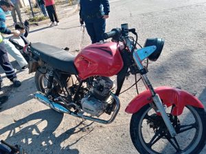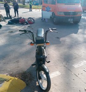 A las 15 horas del día de la fecha se produjo un accidente de tránsito entre dos motocicletas en intersección de calles Juan B. Justo y Mansilla, entre una motocicleta Zanella 70 cc, sin dominio, conducida por Nicolás Ciambroni (25) y otra motocicleta Imsa 150 cc, conducido por Delgado Gastón (24) y acompañado por Duarte Brian (24).