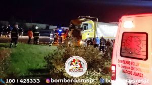 A las 1:05 horas Bomberos Voluntarios de Marcos Juárez son convocados por alarma general por una colisión entre dos camiones por alcance sobre Autopista en el kilómetro 433.