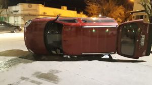 En horas de la noche del Sábado, personal policial fue comisionado a calle Edison e Independencia donde se produce un accidente de tránsito, se entrevista a una femenina mayor de edad (38), con domicilio en la localidad, quien manifiesta que conducía un vehículo marca Peugeot Partner de color Bordo, la cual se dirigía por calle Edison con sentido Oeste – Este, siendo impactada por un vehículo Chevrolet Corsa de color negro, conducido por un masculino mayor de edad (60) de la misma localidad, quien habría circulado por calle Independencia en el sentido Norte – Sur, a raíz del impacto el vehículo marca Peugeot vuelca, sin que ocasionará lesionados.